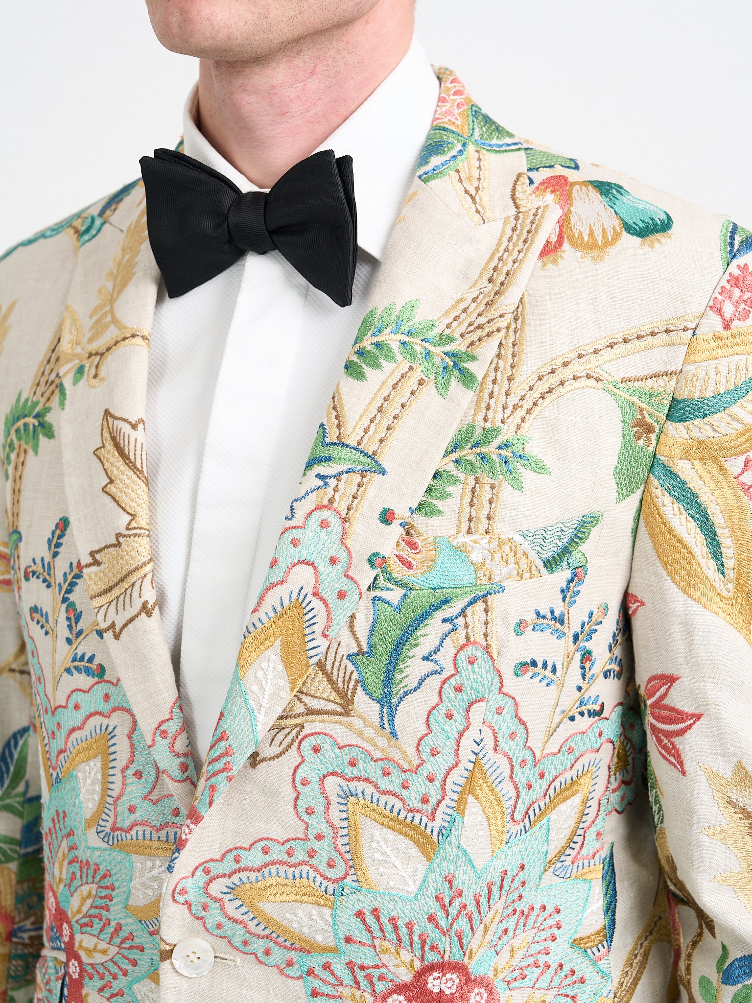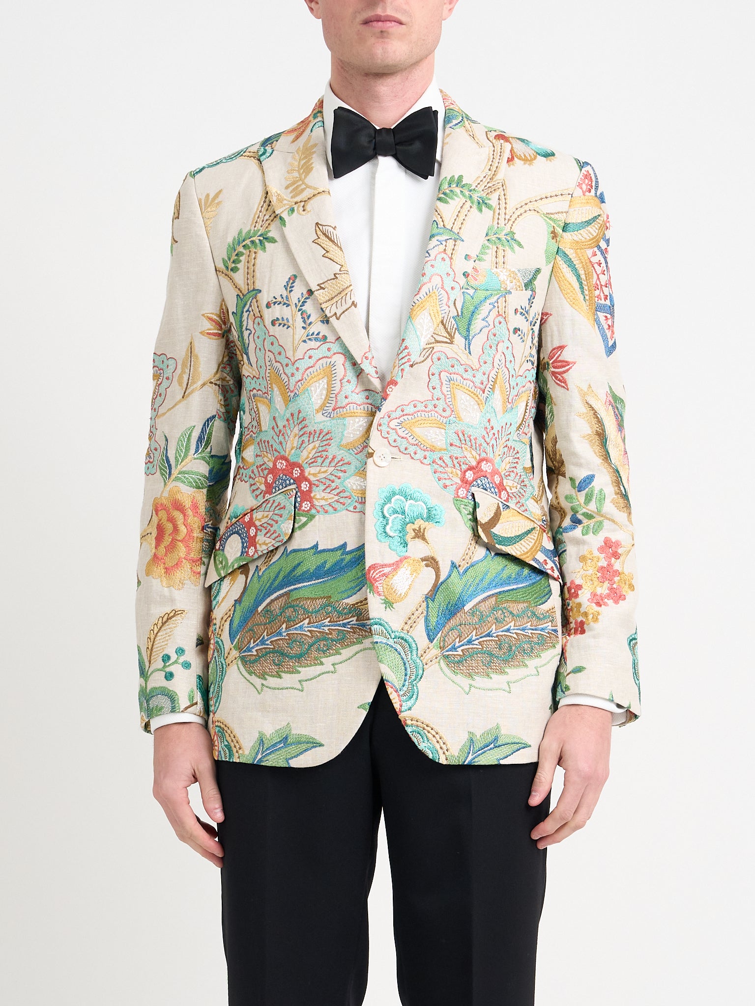 Morning coats, tailored suits and waistcoats form the backbone of the range, alongside dinner jackets, velvet and smoking jackets for evening wear. Fabrics are selected for both performance and presence, from breathable gabardine wool and linen to rich velvets and patterned silks.