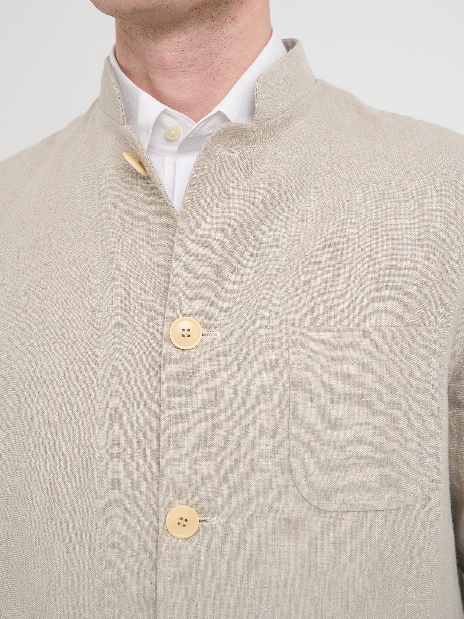 The simplified fastening and clean front allow the fabric and colour to take centre stage. Rich tones such as navy, racing green, olive, and midnight black make these jackets easy to pair with tailored trousers, crisp shirts, or refined knitwear, depending on the formality of the occasion.