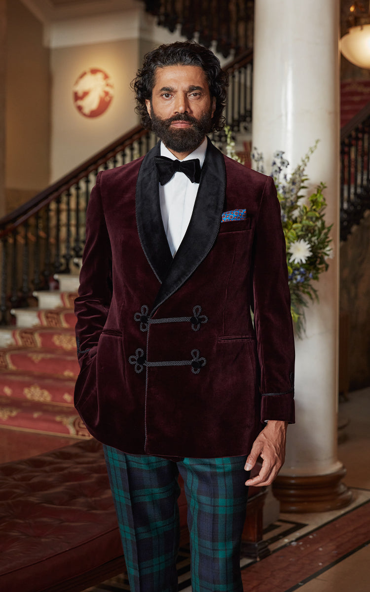 Defined by velvet cloths, shawl collars and decorative detailing, the smoking jacket balances ceremony with ease. Whether worn in place of black tie or as a statement piece at home, it remains a confident expression of evening dressing.