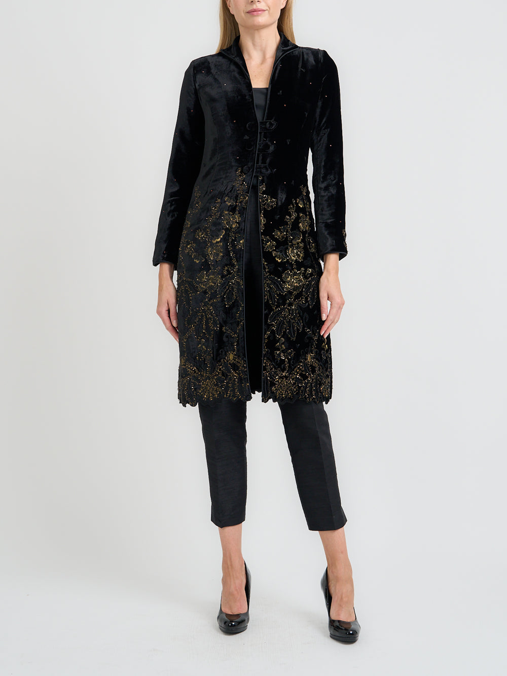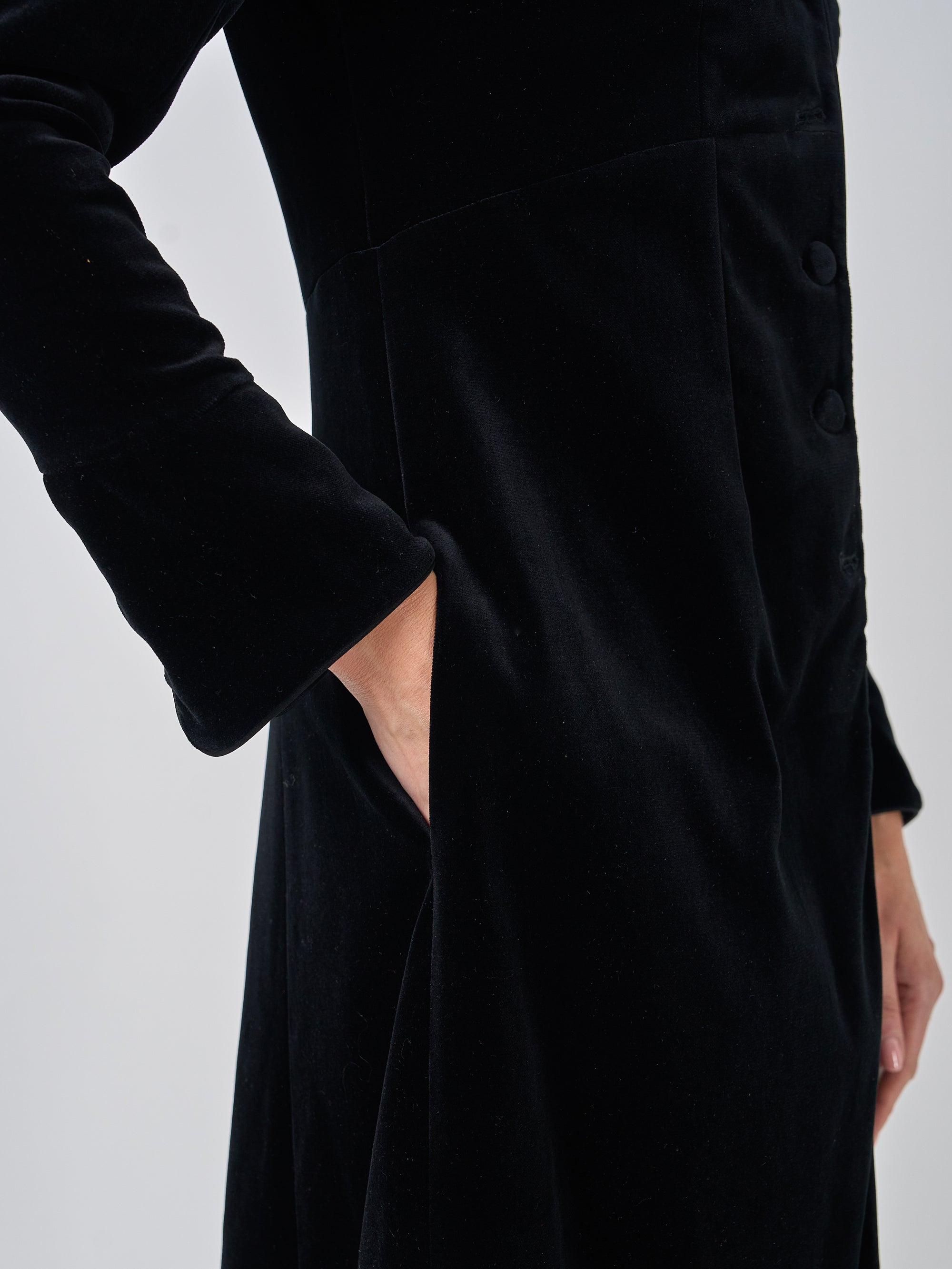 Indulge in opulent elegance and dark romanticism with Favourbrook's velvet coats. A fabric synonymous with luxury, velvet bestows a regal touch to evening ensembles, and so our collection combines classic sophistication with contemporary flair, ensuring you radiate a dark, timeless allure. Explore our range for an unforgettable style statement.